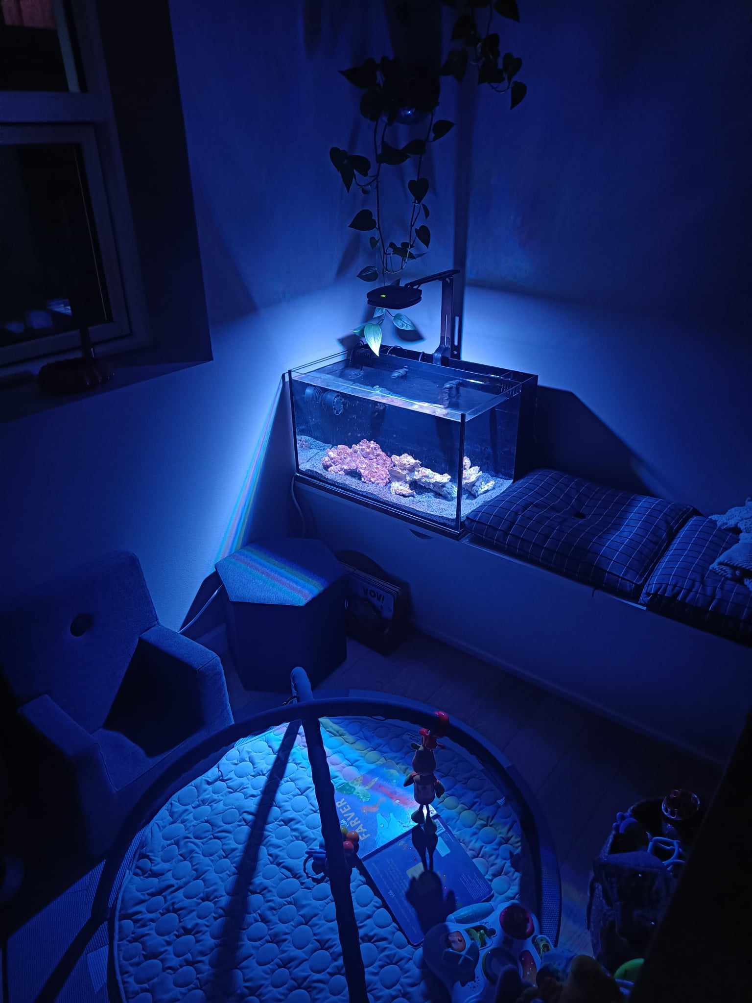 Det gik og går ret godt. Men mon ikke jeg slet ikke ved, hvordan bakterierne egentlig har det? Jeg har ingen fisk. Jeg har kastet et par testkoraller i