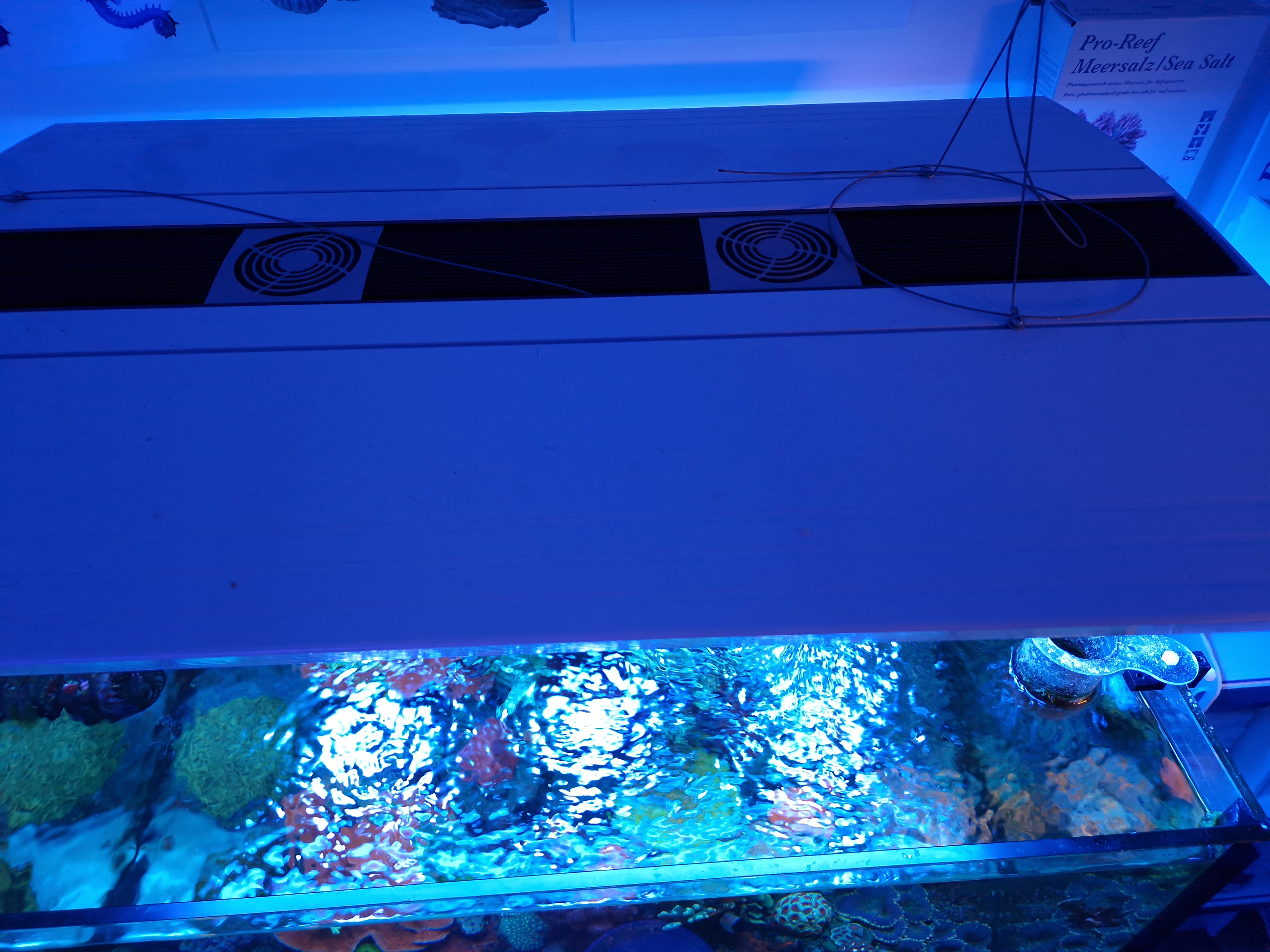 Den første er den største, Aurora V8 (men den mindste V8'er. (500 watt i alt (300w LED (3 pucks),200wT5 (6 rør)) Kæmpe tung lampe med masser af smæk og varmedannelse, og jeg frygter den engang falder ned :G Men jeg er helt tosset med kombinationen af T5 og LED. Der er så mange muligheder for udtryk i akvariet, fx har jeg aldrig været glad for rød LED, men fx et rød/lilla T5 rør sammen med de blå dioder giver et helt forrygende farveudtryk i korallerne, man ikke får med LED alene.