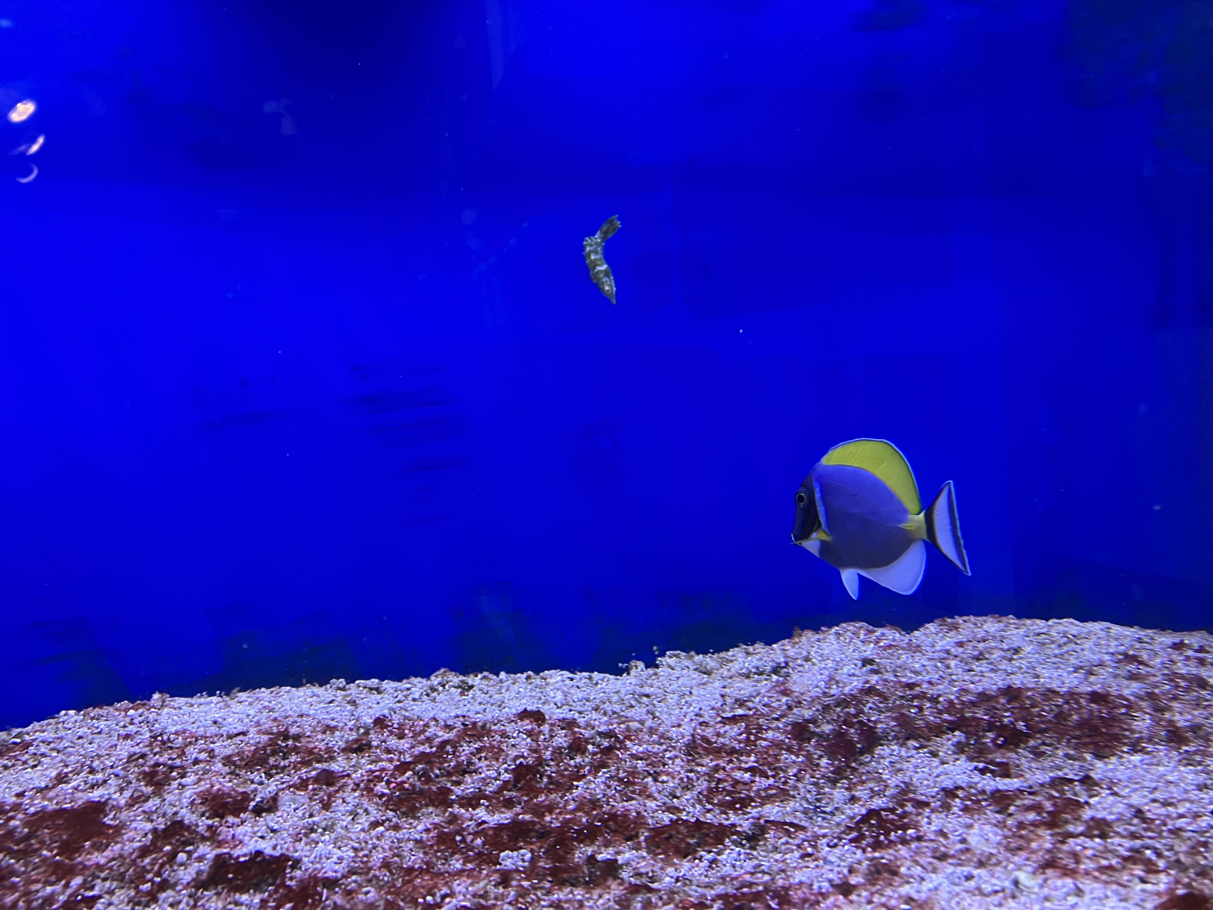 Der var et pænt udvalg af fisk i akvarierne og tørvarer på hylderne.