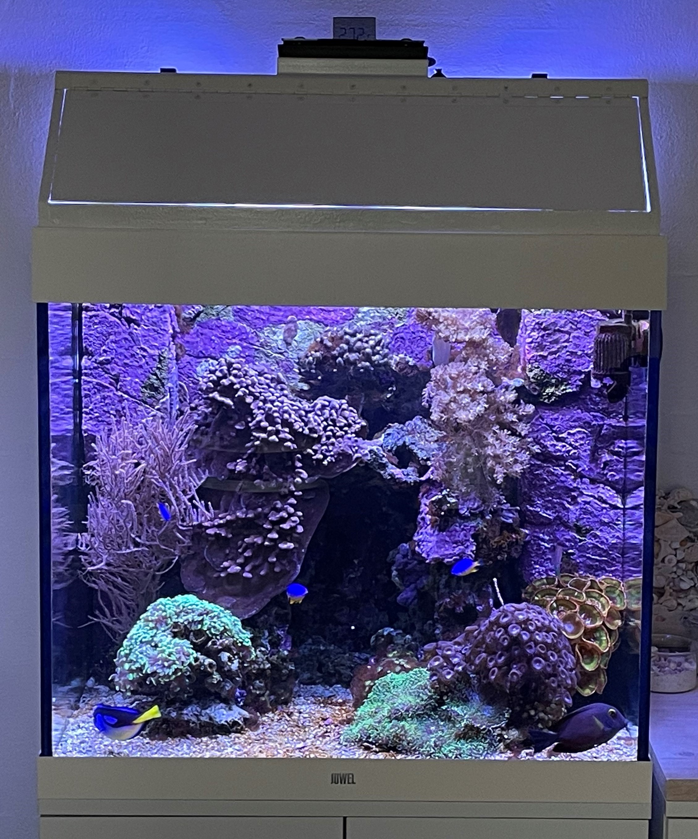 Sælger alle koraller, fisk og levende sten fra dette Lido 200L akvarie samlet for 3500 kr.