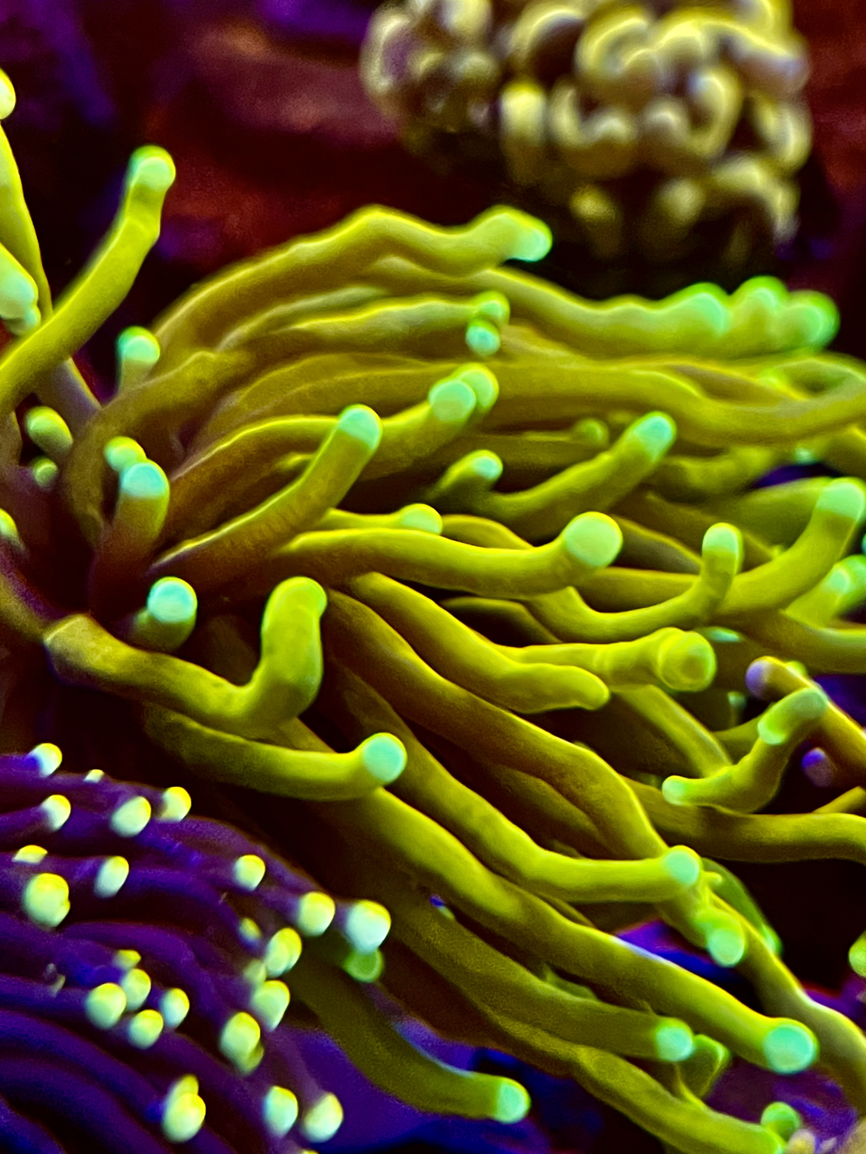 Fungia med skrig grønne polypper. Sælges som sæt, dvs en af hver, til 1000kr
