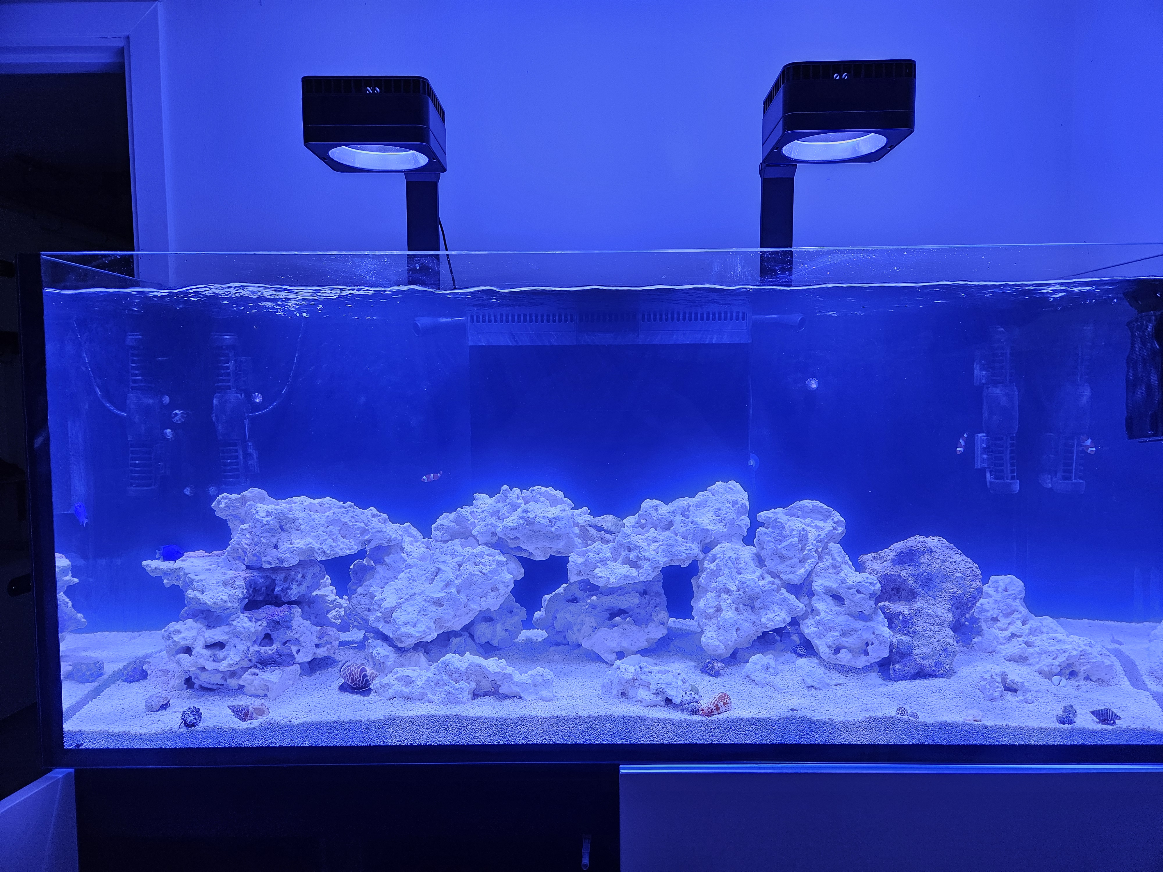 Jeg har ingen alger, der er 2 klovne i og krebs mm så der bliver lavet lidt amonia. overvejer om jeg skal komme 2 fisk mere i eller vente lidt mere..