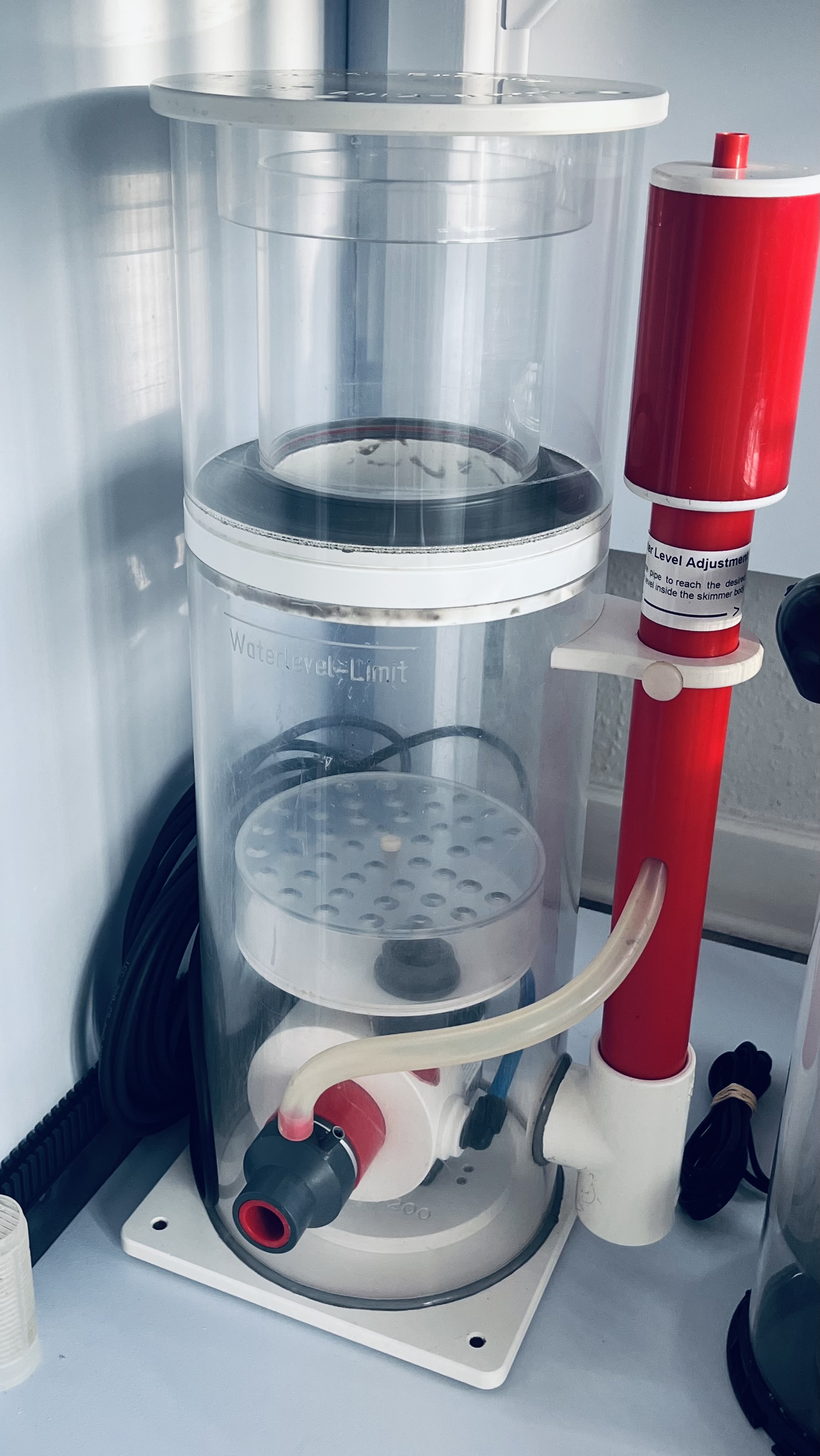 Den der plade med hullerne i på din skummer sidder ikke rigtigt . Der hvor der ingen huller er, skal sidde over , der hvor vandet kommer op af pumpen