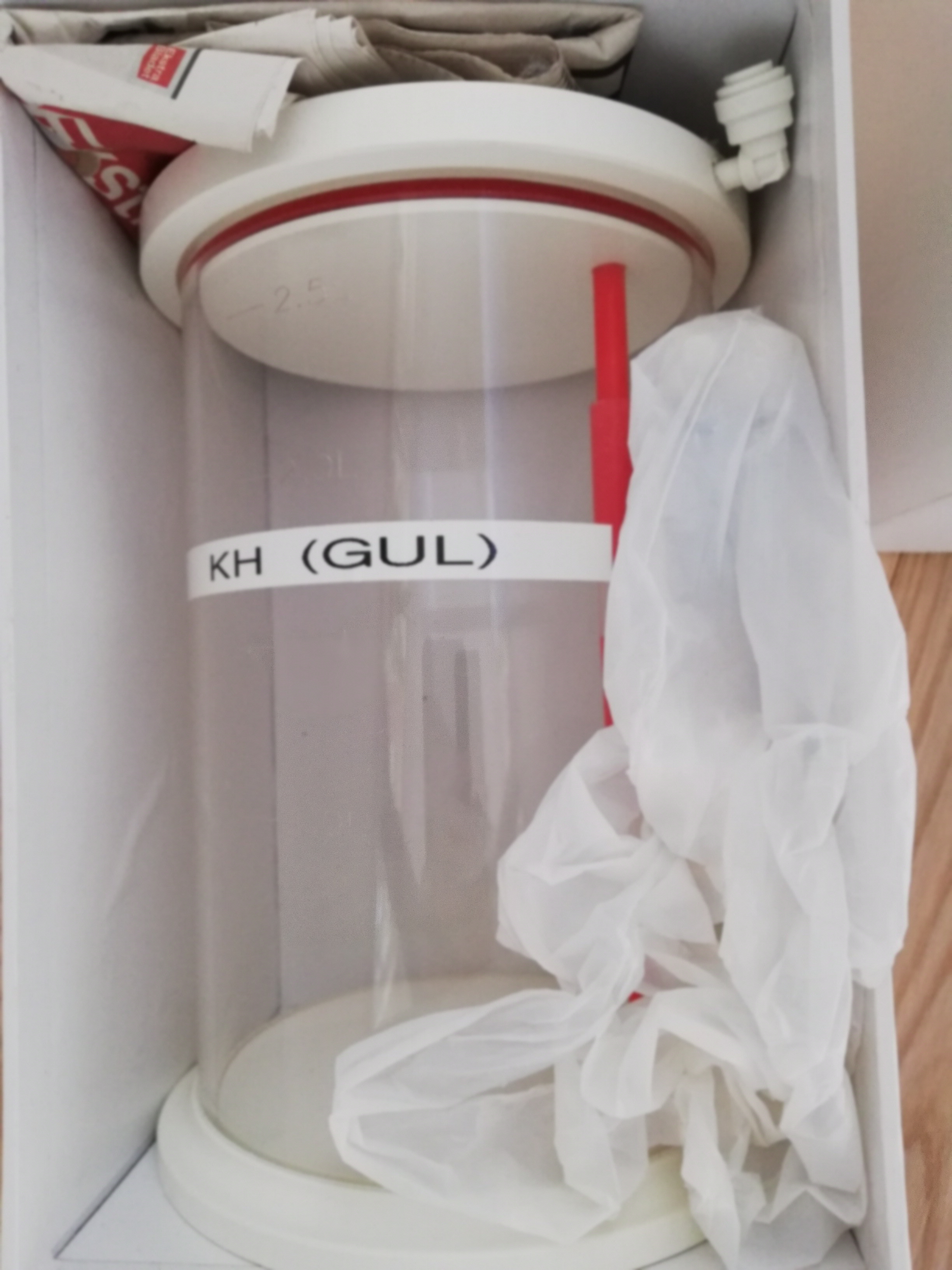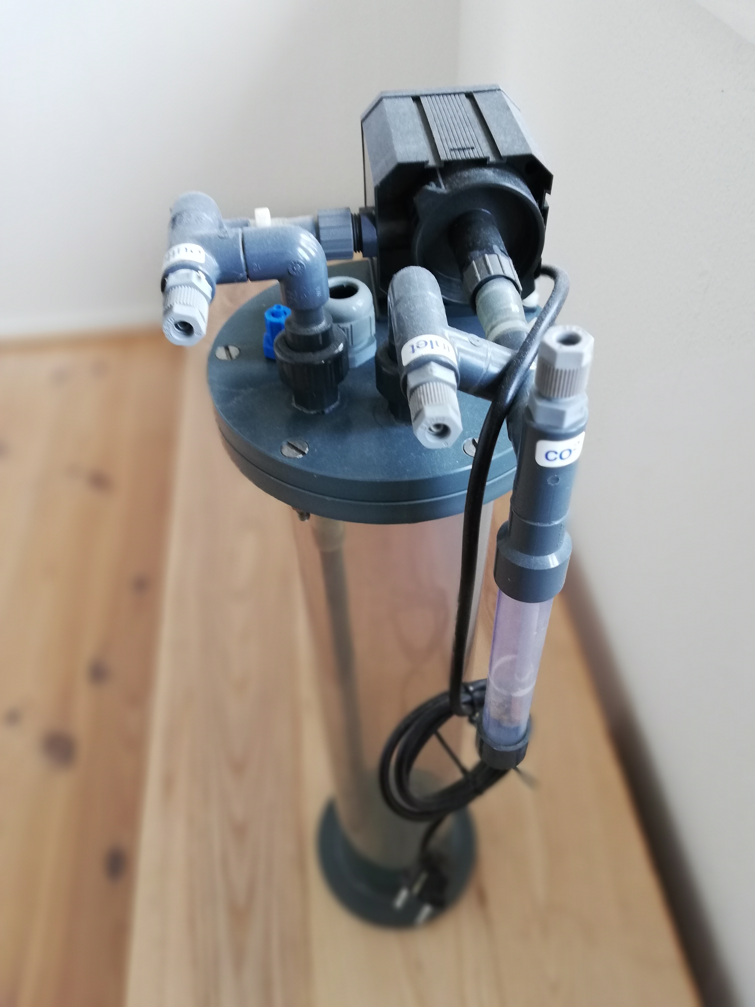Højde: ca. 710 mm; Diameter Reaktorrør: 110 mm; Bund 160 mm; Indhold op til 6 kg; Pumpe Eheim 1048
