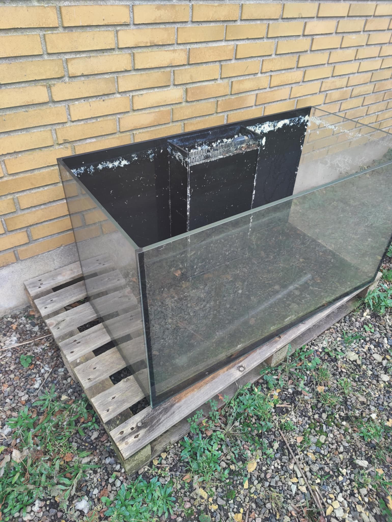 Ville I putte vand i dette akvarie i forhold til den flig der er røget af i toppen af glasset på fronten ude i højre side?