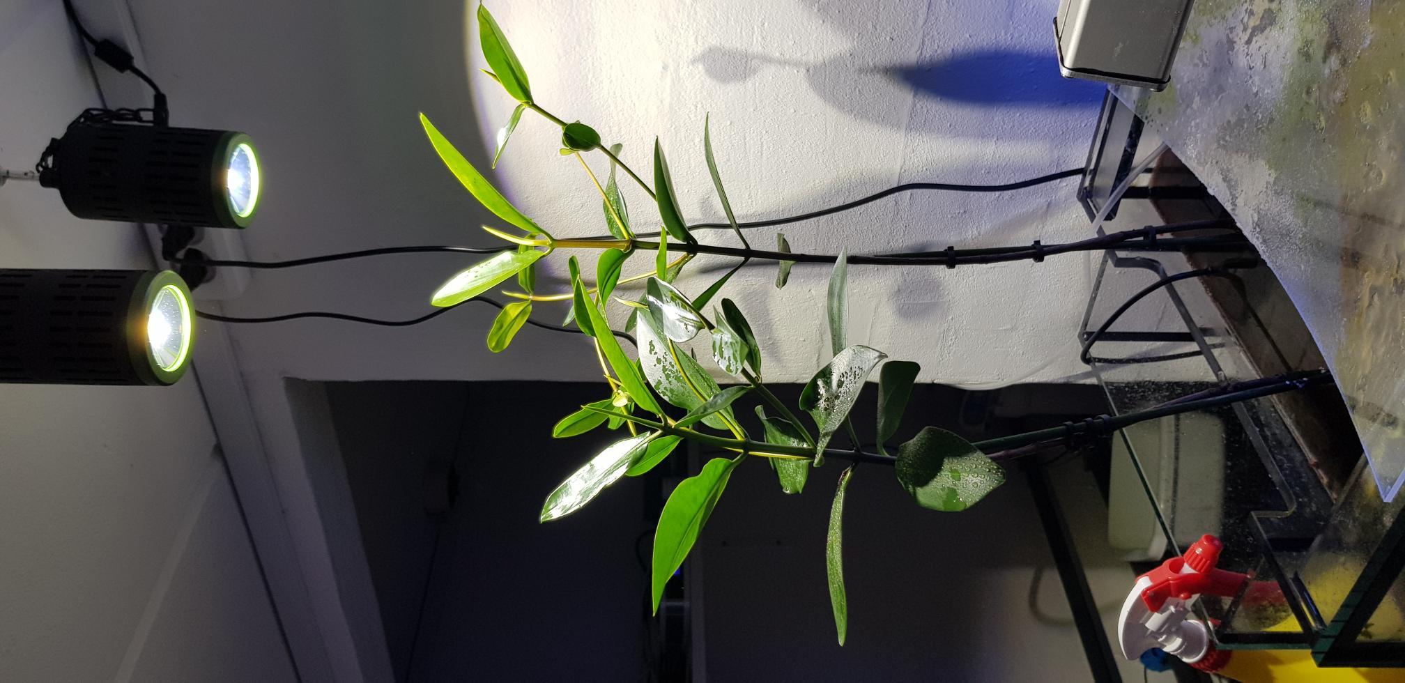 min ide er at have dem hængende i vandkanten, så rødderne bliver lange og som ben strækker sig ned imod sandet i akvariet. Af lys vil jeg have tre kessil tuna sun (plantelys) over